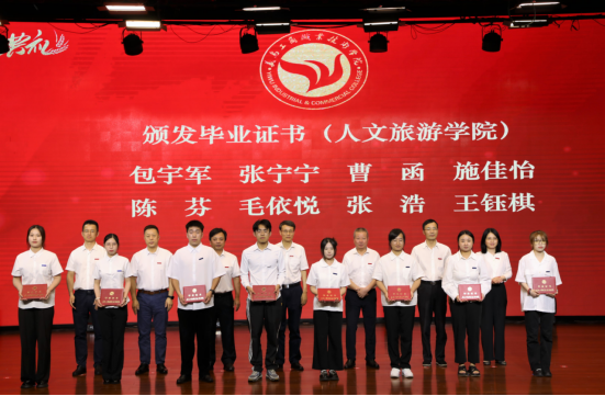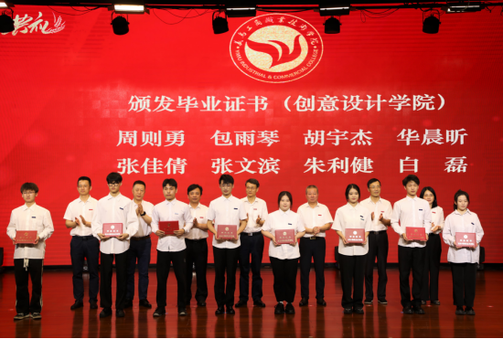 李昌祖书记、马广院长为省级优秀毕业生和金穗学子颁发荣誉证书,党委副书记叶斯源宣读表彰文件,校领导班子成员为毕业生代表颁发毕业证书。