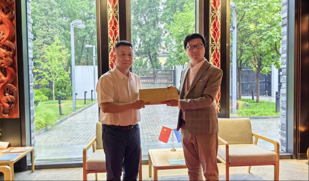 校领导赠送纪念品给新西兰驻华大使馆教育参赞