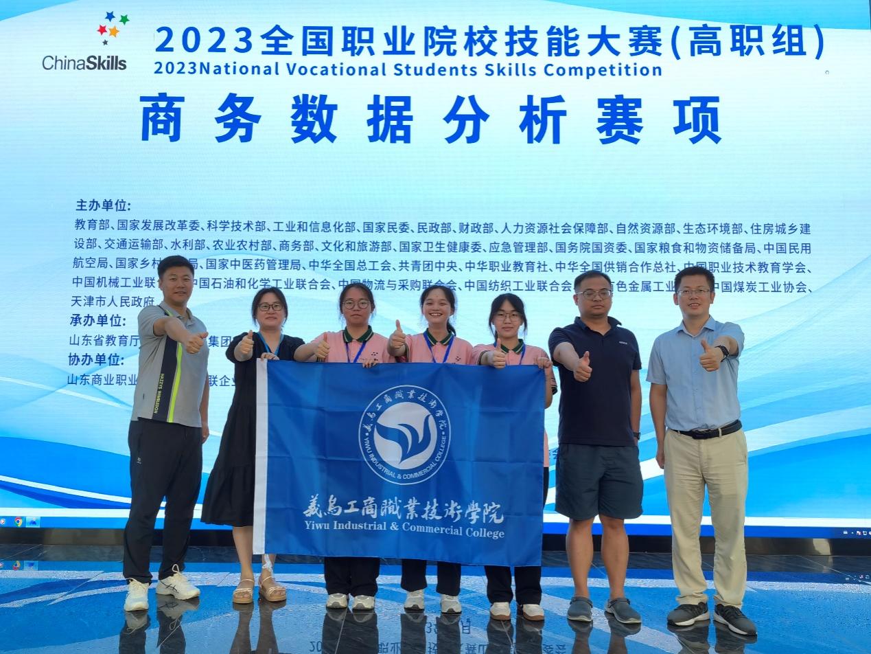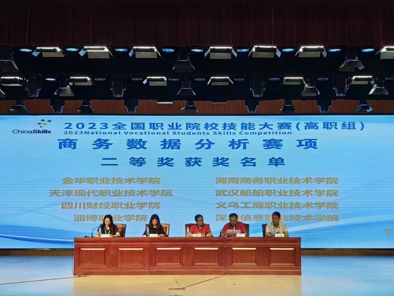 首届全国职业院校技能大赛高职组"商务数据分析"赛项于2023年7月16-18日在山东商业职业技术学院举行。本次大赛汇聚了来自全国31个省(自治区、直辖市)79所院校的学生队伍。由我校创业学院商务数据分析与应用专业张怡超、徐宇微和周欣怡组成的学生团队,在李文强、陈晓红2位老师的指导下,经过1天的紧张激烈角逐,取得了国赛团体二等奖的成绩。