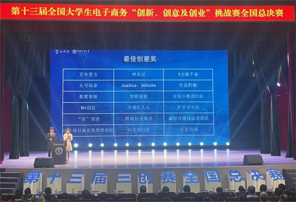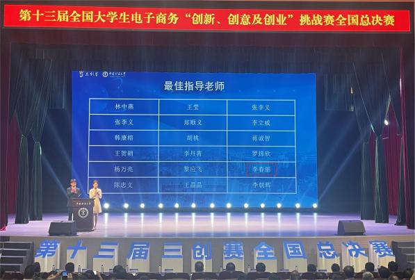 8月1日至2日,第十三届全国大学生电子商务“创新、创意及创业”挑战赛(以下简称“三创赛”)常规赛全国总决赛在中国矿业大学圆满举行。我校李春丽、金航飞老师指导的“跨境创业渔具”团队《渔来渔往》项目荣获特等奖,位列全国第三名。团队还荣获最佳创新奖、最佳创意奖、最佳创业奖,两位老师荣获最佳指导老师。