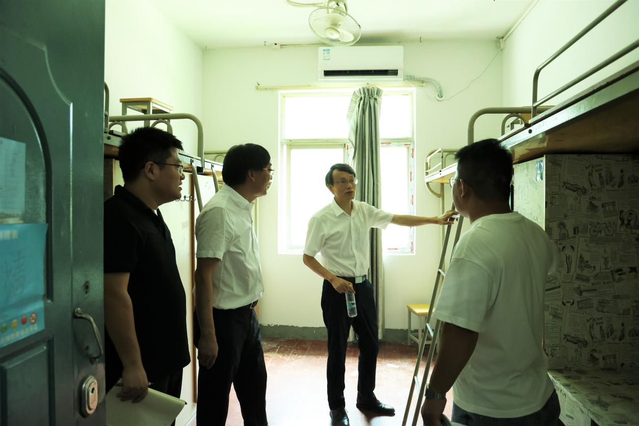 8月10日,校党委书记李昌祖带队检查暑期工程项目建设情况。校党委副书记叶斯源,学校办公室、后勤资产管理处负责人,相关工作人员参加。