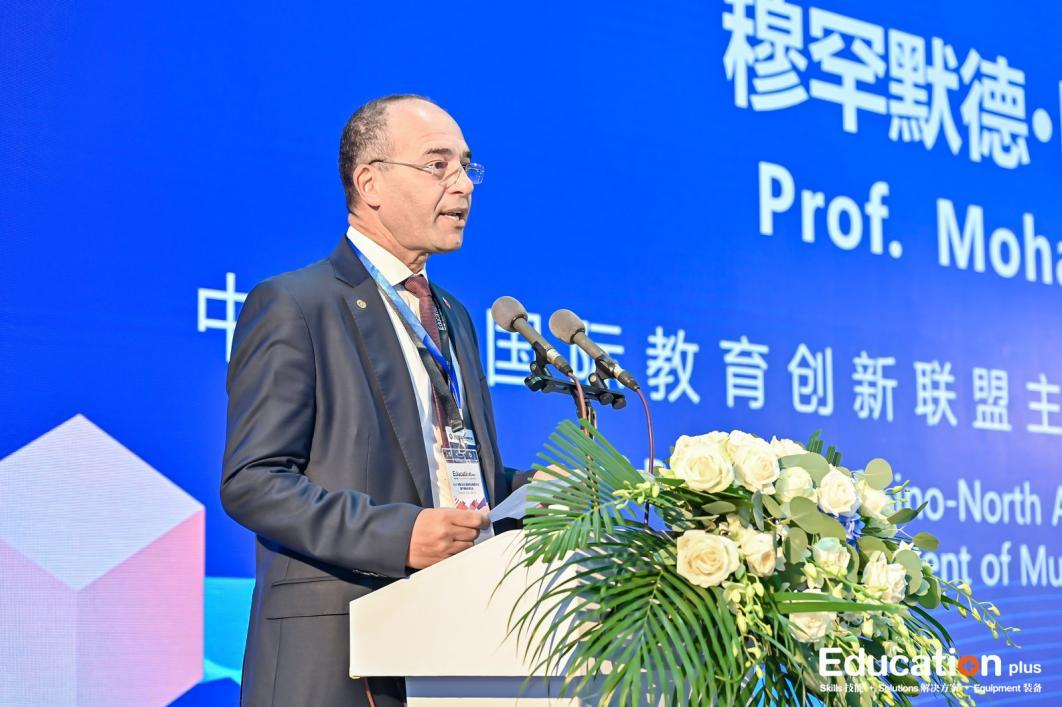 中北非国际教育创新联盟主席、蒙迪亚波利斯大学校长穆罕默德·巴尔卡维致辞