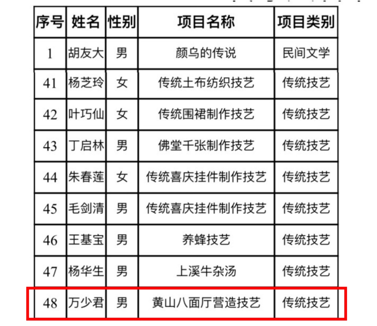 据悉,本次认定的48名非遗项目代表性传承人包含了曲艺、传统戏剧、传统美术、传统医药、传统技艺等8个项目类别、42个非遗项目。