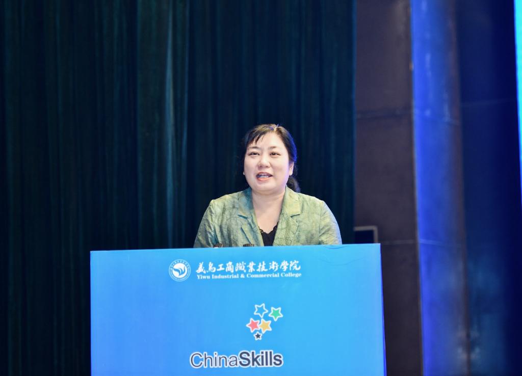 王迎致辞,她指出,直播电商在激活市场、拉动经济的同时,创造了新的就业机会和人才需求缺口。义乌市政府大力支持直播电商产业的发展,充分发挥小商品市场资源优势,多措并举着力完善直播电商产业新生态,积极培育经济发展新动。义乌市政府也将不遗余力地支持办好本次大赛。希望通过此次技能大赛,进一步彰显职业教育的力量和价值,培养更多直播电商相关领域的高素质人才,推动产教融合和工匠精神的传承,不断为地方经济的发展提供强有力的支撑。