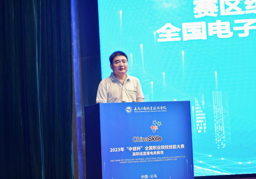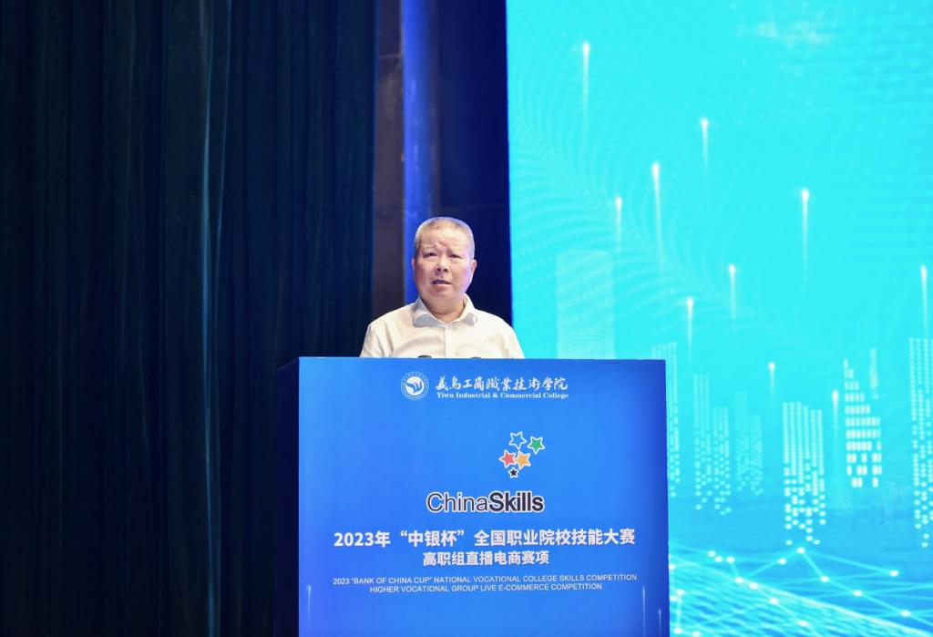 开赛式上,马广致欢迎词,他向出席开赛式的领导和全国各地参赛师生表示热烈欢迎。他表示,承办此次大赛是教育部对我校的充分信任,也是对学校总体发展和直播电商专业建设成果的肯定和认可。他提到,学校以“义乌发展经验”为根本遵循,与义乌产业共舞、与市场发展同行,紧跟行业风向标和电商新业态,在直播电商职业教育领域也走在前列,培养了大批直播电商高素质技术技能人才。学校将以严谨的态度、专业的精神、务实的作风、周到的服务,全力做好各项服务和保障工作,确保本次大赛顺利举办。