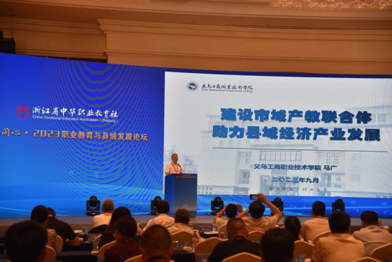 由省中华职教社主办、义乌市委、市政府承办的之江同心·2023职业教育与县域发展论坛于9月4日-5日在义乌举行。省政协副主席、省中华职教社主任陈小平,金华市委常委、统战部部长王志强,义乌市委书记王健出席开幕式,义乌市领导贾以鸣、龚淑娟,学校党委书记李昌祖、院长马广参加开幕式。来自省市县职业教育特邀专家、职教社社员代表、企业家代表200余人参加本次论坛。省委统战部副部长、省中华职教社常务副主任王利月主持开幕式。