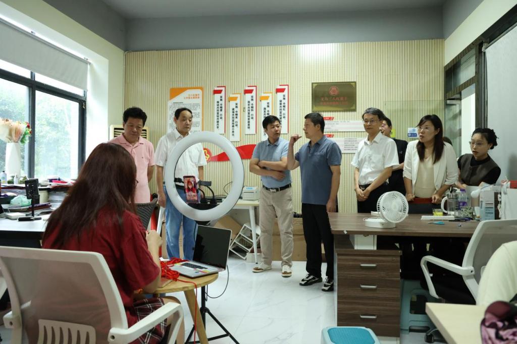 在创业园,创业学院负责人向来访嘉宾介绍了学校创业教育发展历程、品牌荣誉、人才培养、优秀校友等情况,带领参观了电商直播间、创业项目工作室、青创空间等实践基地,展示了学校电商直播人才培养、学生创新创业教育等成果。