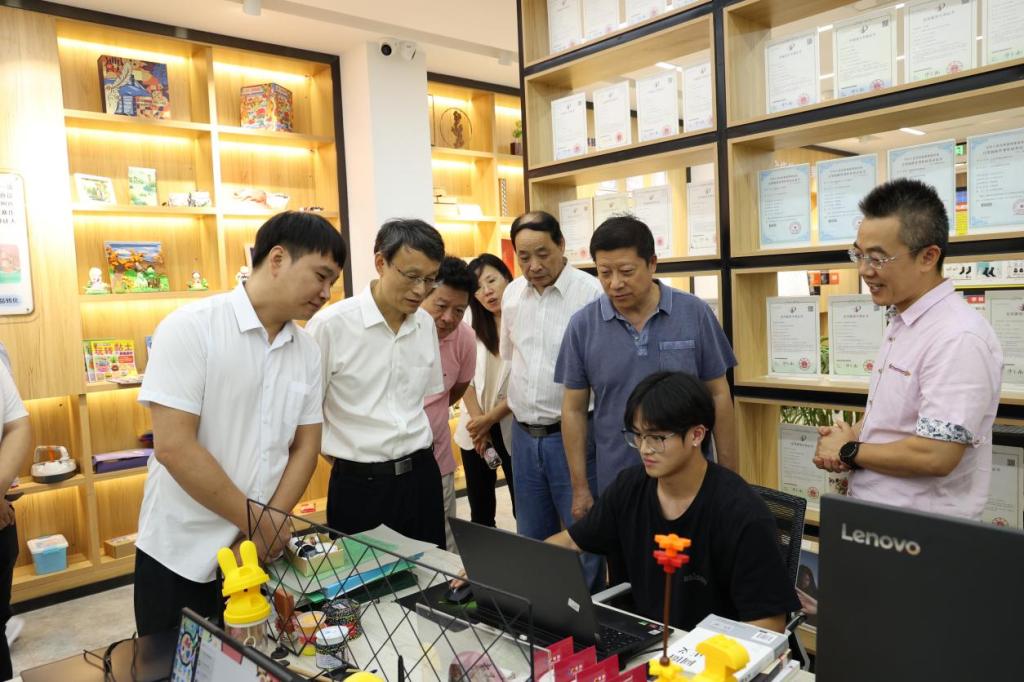 在创意园,创意学院负责人介绍了创意园的发展概况,带领嘉宾参观了“国家旅游商品研发中心”和“国家林产品创意研发中心”展示区、学生创意工作室,展示了创意园为学校人才培养、发挥高校服务地方的载体和平台作用。
