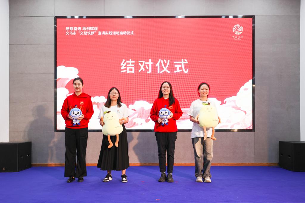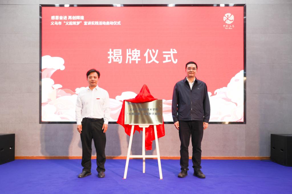 学校“望道行”实践宣讲团与李祖村新农人宣讲团开展结对仪式,通过校地联动开展宣讲,进一步讲好义乌故事,“义起筑梦”,颂赞辉煌。