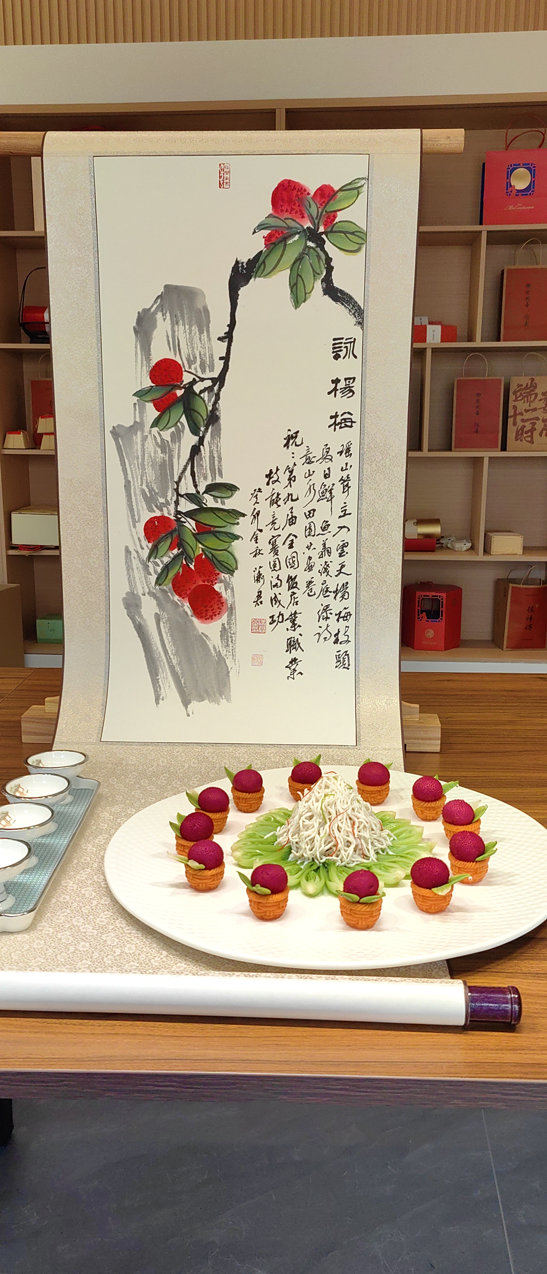 一颗杨梅,是祖国的荣光,她是唯一能在中国品尝到的水果;她可直接食用、可入药、可泡酒;她有着深厚的文化底蕴,是历代文人口中的咏诵之物之一,逐渐形成独特的杨梅文化,延续了千年。本次菜品,楼洪亮老师对杨梅入菜进行了充分文化挖掘与传承,对烹饪方式进行开拓与创新。