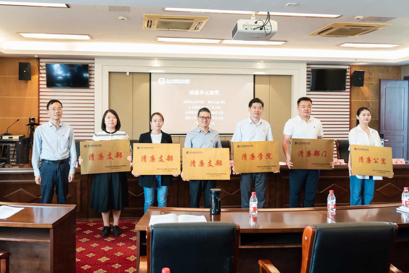 会上传达了上级纪委有关会议文件精神。会议还分别对2022-2023学年党风廉政建设监督员、2023年度清廉单元示范单位、第五届“清风五月”活动获奖学生代表进行了表彰。
