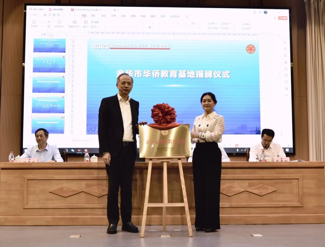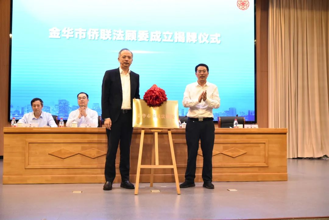 会议举行了金华市侨联法顾委、金华市华侨教育基地揭牌仪式。同时为各县(市、区)、金华开发区涉侨纠纷多元化解中心和6家市级为侨法律服务基地授牌。