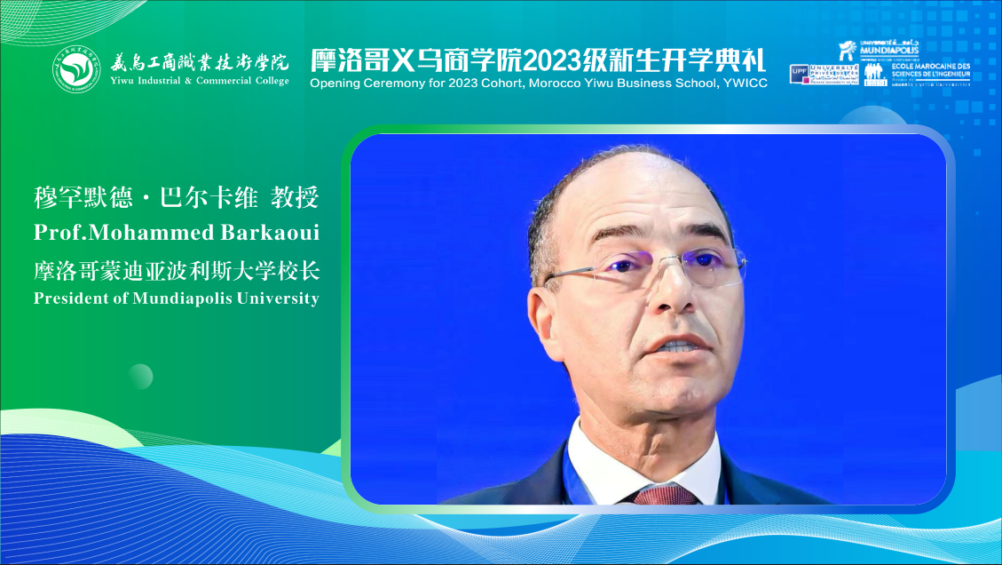 摩洛哥蒙迪亚波利斯大学校长穆罕默德·巴尔卡维教授感谢我校大力支持两校开展紧密合作,他指出,在全球化时代,教育国际交流合作对学生成长十分关键。摩洛哥义乌商学院的成立是摩洛哥和中国两国高校良好合作的开端,有助于推动两国人文交流,促进两国青年学生跨文化成长和技能提升,摩洛哥义乌商学院开展的“2+1(摩洛哥学习2年+义乌学习1年)”人才培养模式必将促进两国“民心相通”和经贸往来。期待两校能在人才培养、师资交流、科研合作等方面开展深度合作,产出丰硕成果。