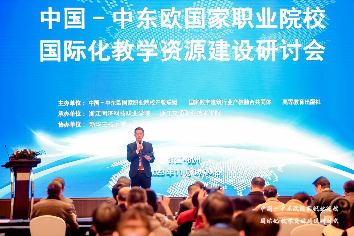 近日,由中国—中东欧国家职业院校产教联盟、国家数字建筑行业产教融合共同体、高等教育出版社主办的中国—中东欧国家职业院校国际化教学资源建设研讨会在杭州顺利召开。教育部职业教育发展中心国际处研究员赵长兴、中国—中东欧国家职业院校产教联盟理事长、浙江纺织服装职业技术学院校长郑卫东,国家数字建筑行业产教融合共同体理事长、浙江建设职业技术学院校长何辉,高等教育出版社在线职业教育发展中心主任王冰、高等教育出版社海外合作部主任孙云鹏、天津高职教育研究会会长、天津轻工职业技术学院党委书记戴裕崴等160余名领导、专家和院校代表参加会议,我校校友总会会长何少庆应邀在会上作主题发言。