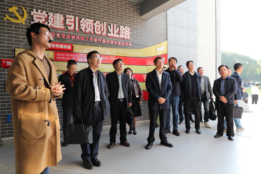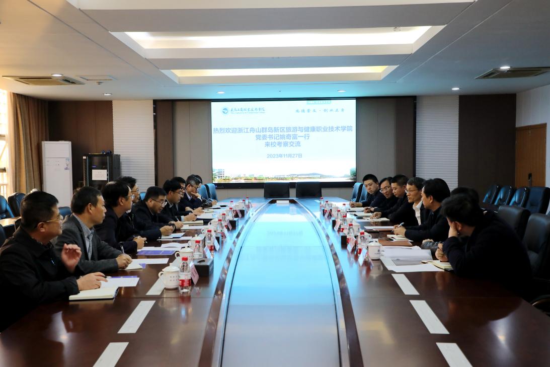 11月27日,浙江舟山群岛新区旅游与健康职业学院党委书记姚奇富、党委副书记张朝阳一行来我校调研交流,走访参观了学校创业园、智能制造科创实践基地、创意园。学校党委书记李昌祖、党委副书记叶斯源陪同调研。