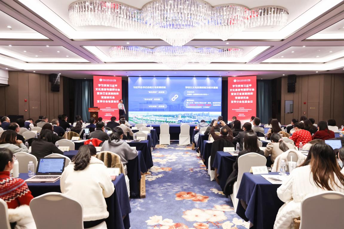12月18日-19日,由浙江省高职院校党建研究会宣传分会、宁波卫生职业技术学院主办,中国教育在线协办的学习贯彻习近平文化思想专题研讨会暨浙江省高职院校党建研究会宣传分会年度会议,在宁波召开。党委书记李昌祖受邀参加并作学校校园文化建设主题分享。