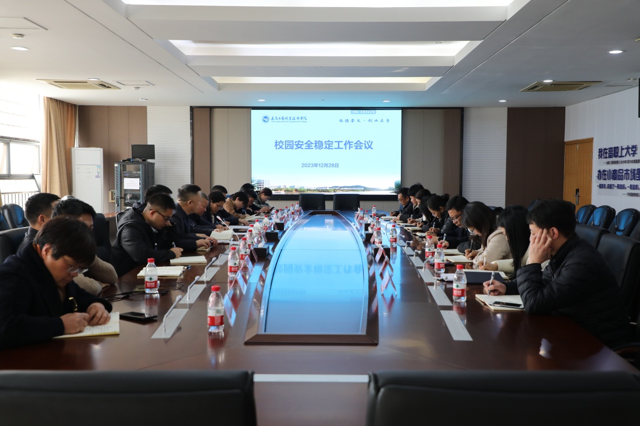 在元旦假期即将到来之际,为维护节假日期间校园安全稳定,12月28日下午,学校召开岁末年初校园安全稳定工作部署会议。校领导马广、徐美燕、樊曜出席会议,相关职能部门负责人和各二级学院党组织负责人参加会议。