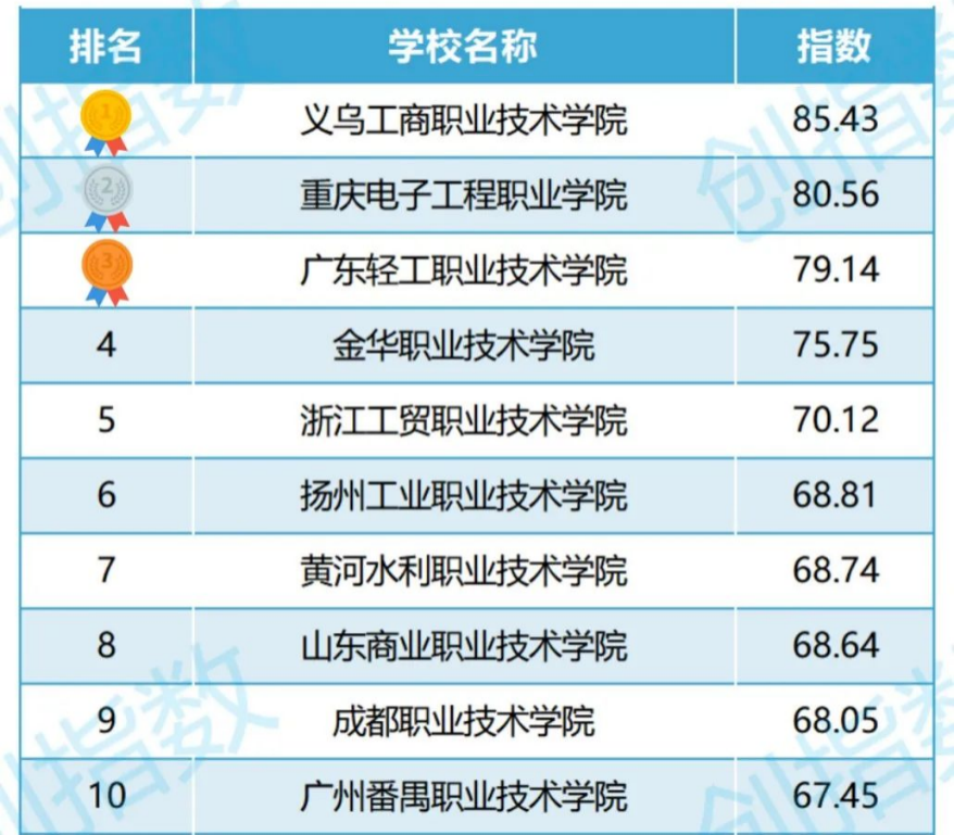2023年中国高职(专科)院校创新创业教育指数榜TOP200前10名高校