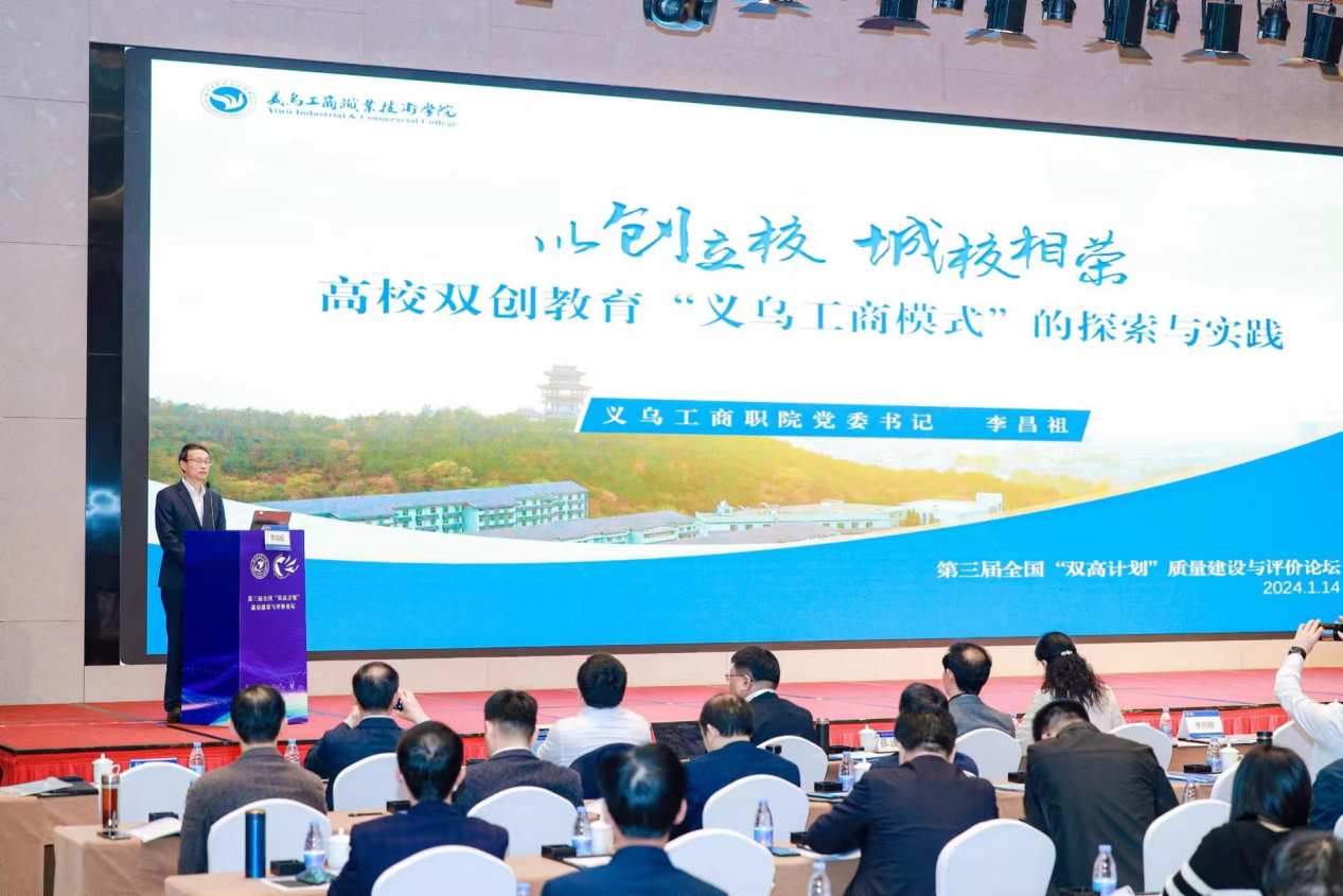 本次论坛主办方邀请了高职领域著名的专家、学者和院校领导共同探讨职业教育最新理念、发展趋势和实践经验,旨在为高水平职业院校建设把方向、绘蓝图、指路径,引领高职院校建设和研究持续繁荣。党委书记李昌祖在论坛上作题为《以创立校,城校相荣:高校双创教育“义乌工商模式”的探索与实践》报告,向来自全国的参会高校介绍学校的双创教育工作经验和实践做法。