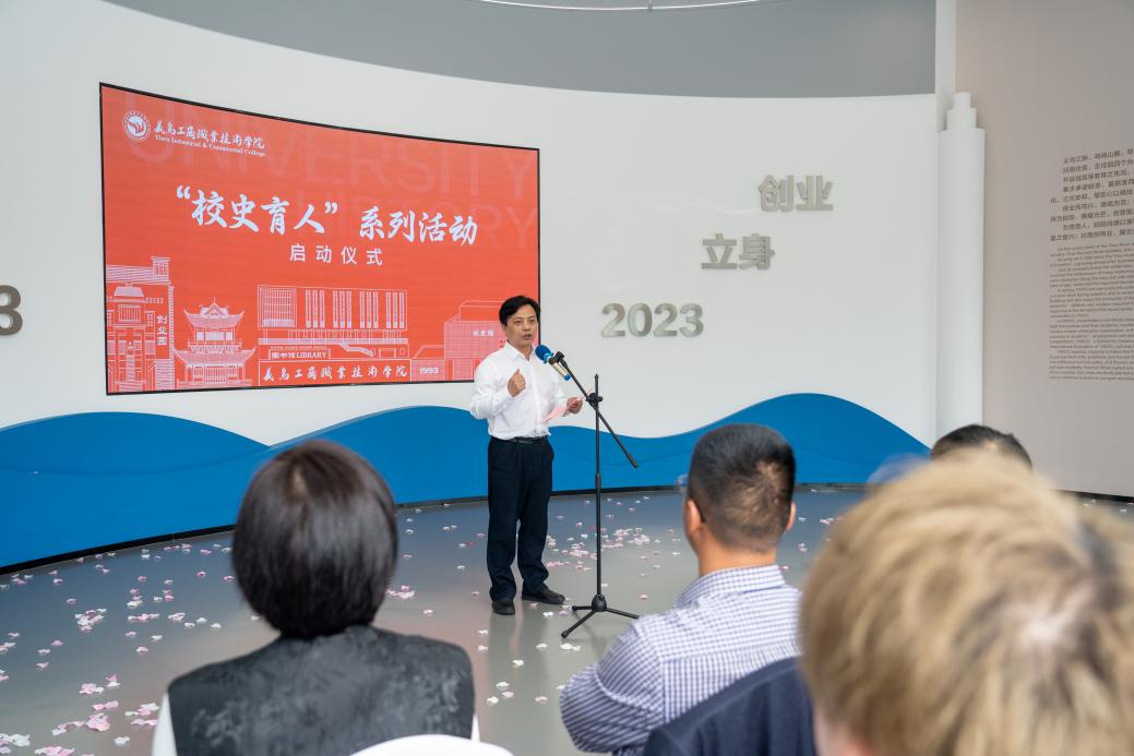 3月24日上午,义乌工商职业技术学院校领导叶斯源、徐美燕,共建单位负责人义乌市城投集团党委书记、董事长吴中强,义乌市职教集团党委书记、总校长方蔚,义乌市实验小学教育集团党委书记楼曙光,义乌市博物馆党委书记金国祯,学校教育发展基金会理事会成员、退休教职工及校友代表、相关部门负责人和学生代表相聚群英湖畔,在校史馆举行大中小学思政教育一体化实践基地合作共建授牌仪式,党委委员、副院长徐美燕主持。