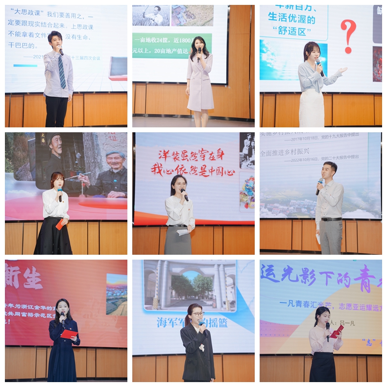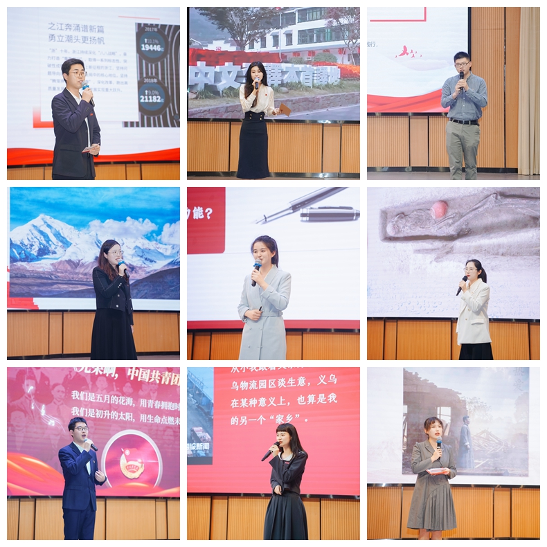 比赛现场,42名师生选手同台竞技,围绕红色教育、发展成就、青春奉献三大主题,结合自身经历,借助一个个身边故事,一段段动人旋律,以真人真事真感情,讲述了红色革命先烈故事、共同富裕美好生活故事、中国式现代化改革创新故事、新时代奋勇争先故事,充分展现了义乌工商职院青年师生的风采。参赛选手的全情投入深深地感染了现场的所有观众,也有效地推动了党的创新理论讲出“青年味”,走入“青年心”。