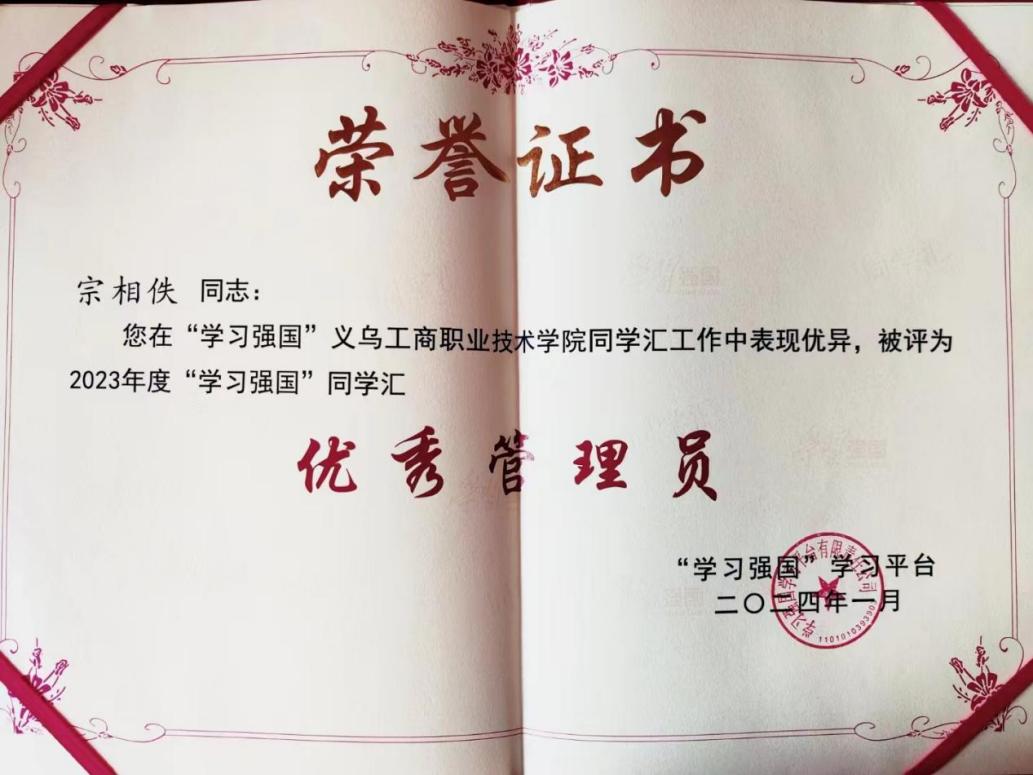 近日,“学习强国”学习平台强国号佳讯频传。“义乌工商职业技术学院”强国号作为唯一高职院校强国号,入选“学习强国”平台强国号百强榜单。学校入选4月“学习强国”同学汇高校榜前五十。今年年初,宣传部宗相佚老师被评为2023年度“学习强国”同学汇优秀管理员。