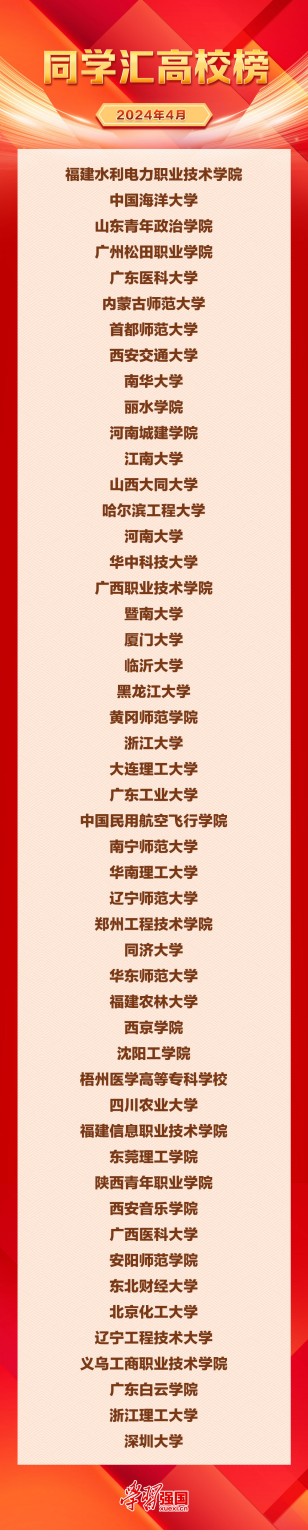 5月9日,“学习强国”同学汇工作室发布2024年4月高校榜,义乌工商职业技术学院入选高校榜前五十。“学习强国”同学汇于2021年9月1日上线,以立足高校、服务同学为宗旨,集内容社区、思政慕课、通知服务功能于一体,在学生群体中广受欢迎。同学汇开发了学校广场、校内、校外全场景覆盖的应用模式,具有图文、短视频、直播等多种内容发布功能,支持互动点赞、评论转发等多种社交场景。截至2023年8月31日,已有310多所高校入驻同学汇,覆盖全国28个省(区、市)。学校于2022年9月1日入驻“学习强国”同学汇,已累计发布150条图文、短视频消息,浏览量近百万。