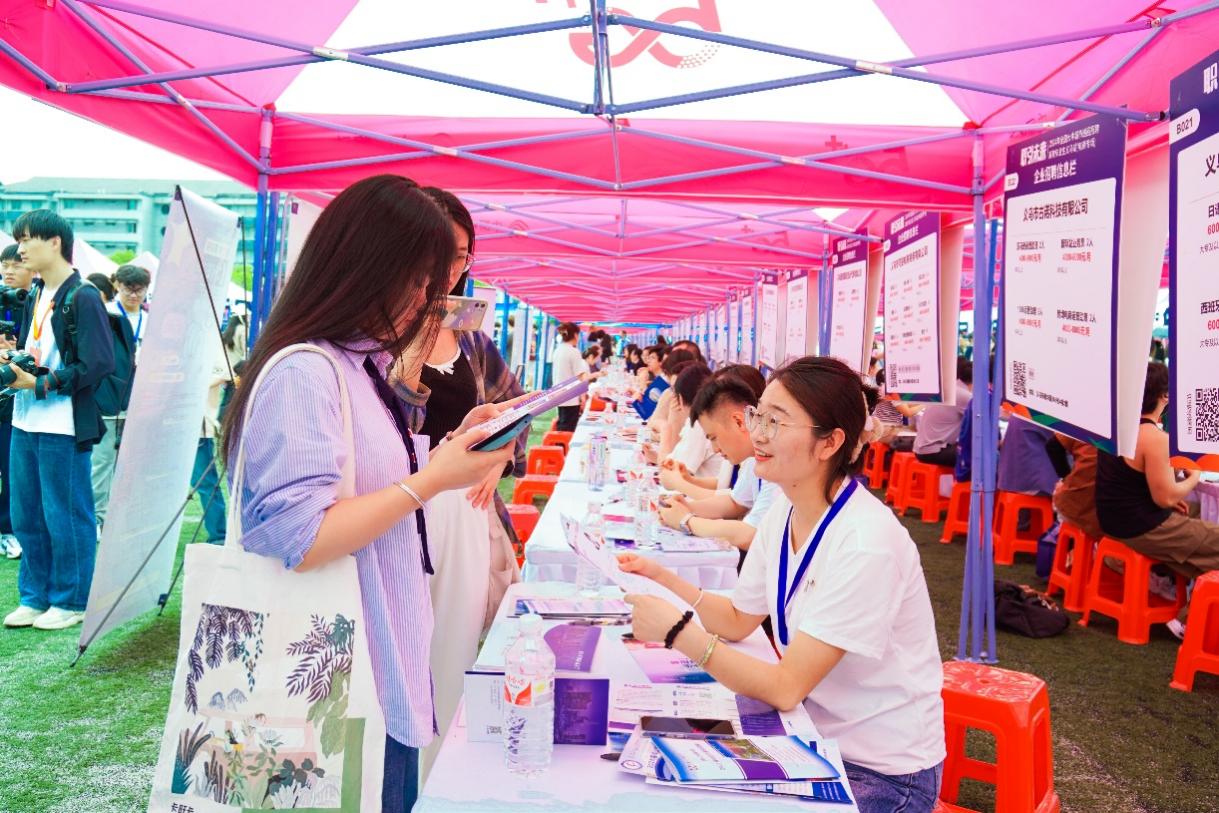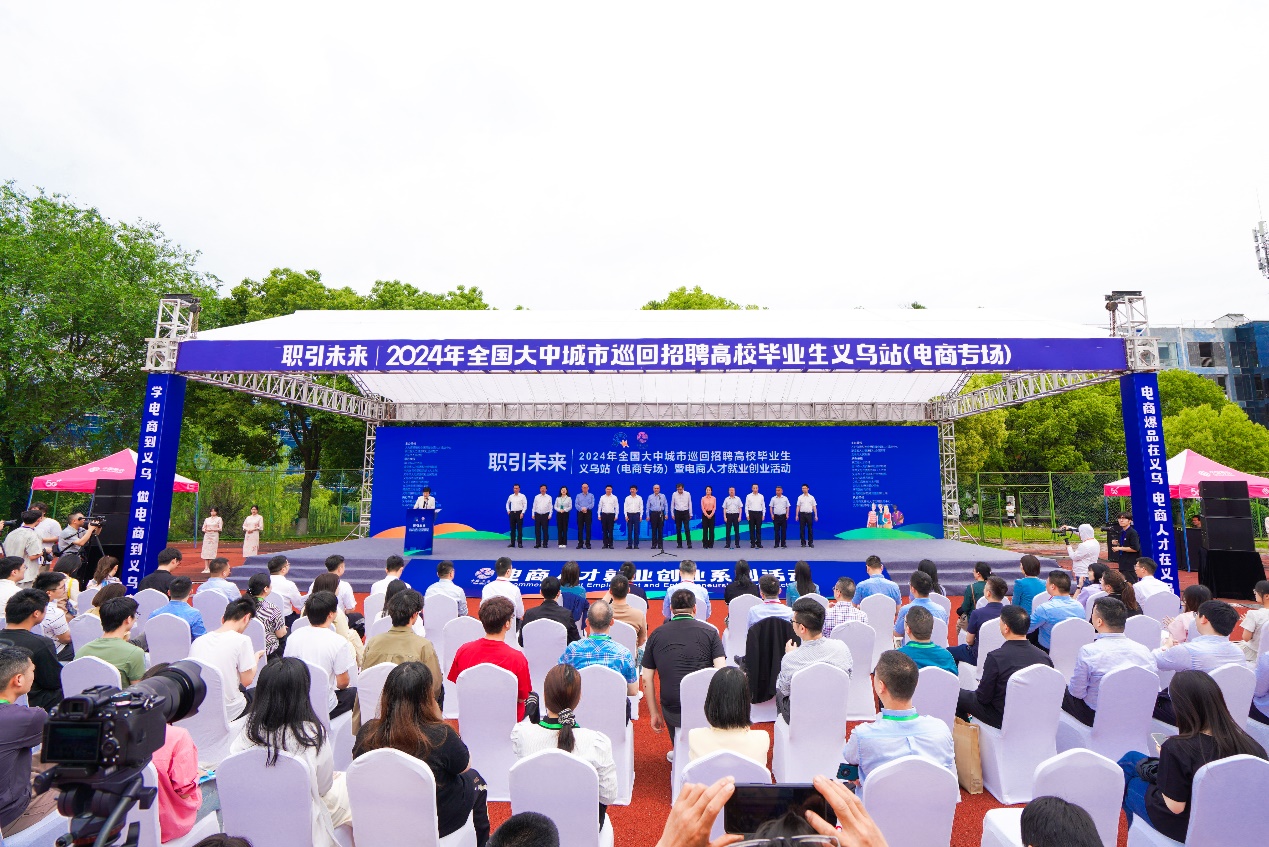 4月28日,职引未来——2024年全国大中城市巡回招聘高校毕业生义乌站(电商专场)活动在学校湖畔操场顺利举行。本次活动由人力资源和社会保障部全国人才流动中心、浙江省人力资源和社会保障厅、义乌市人民政府共同主办,旨在通过搭建校企合作、人才培养的平台,进一步开辟高校毕业生高质量就业通道,打响“就在义乌”“义起创业”品牌。人力资源和社会保障部全国人才流动中心主任杨刚基、浙江省人力资源和社会保障厅党组副书记、副厅长张旭明等出席活动,院长马广、副院长徐美燕参加活动并深入现场与企业互动交流。