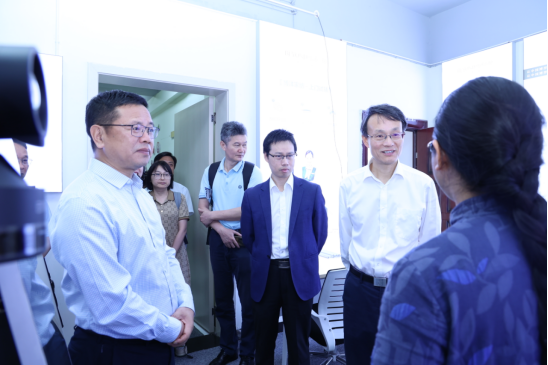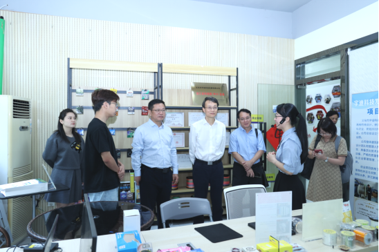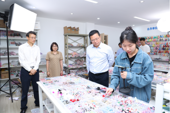 黄学彬一行参观走访了我校创业园、多语种跨境直播基地、数字贸易实训基地等地。