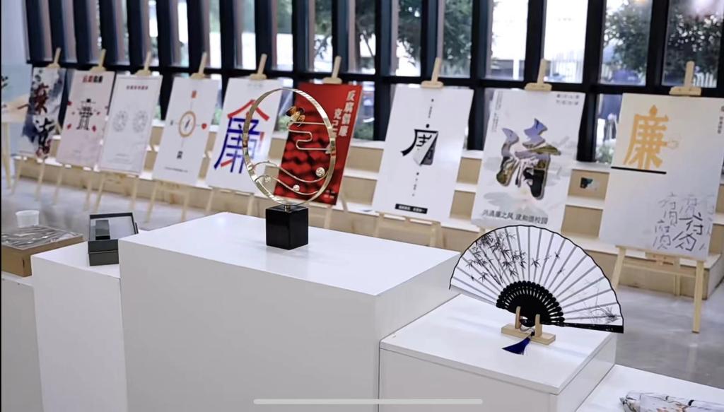 活动现场展出了清廉文创产品以及历届“清风五月”活动中书法、剪纸、绘画、创意设计等各类优秀作品,让师生在艺术的熏陶中,更加直观地感受到清廉文化的魅力。