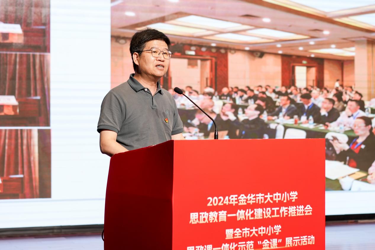 楼伟民肯定了金华市思政教育一体化建设工作取得的成绩,深刻剖析了现存问题,再次强调了持续深化思政教育一体化建设的重要性,对未来的工作提出了明确的指导方向。他强调,各县(市、区)教育局要牵头抓好本辖区思政教育一体化建设工作,主动对接在金高校,统筹区域内中小学、中职学校、教研机构等单位,积极打造区域一体化建设品牌。高校要发挥自身优势,发挥好引领带动作用,加强与中小学思政课教师的交流与合作。中小学要深刻认识到思政教育一体化建设的重要性,明确自身在其中的责任和角色,主动与高校建立合作关系,积极参与高校组织的思政教育交流、研讨和培训等活动。