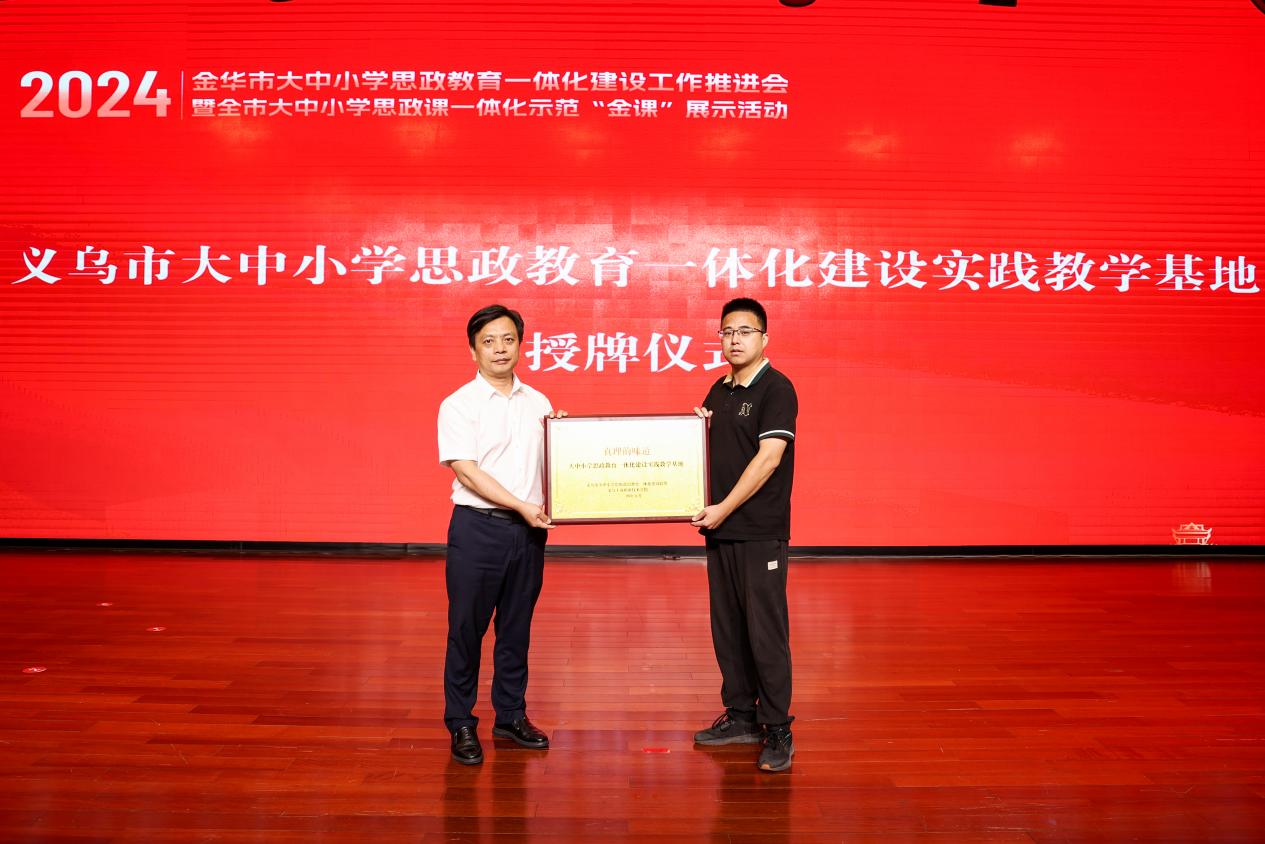 义乌工商职业技术学院党委副书记叶斯源为义乌市“真理的味道——大中小学思政教育一体化建设实践教学基地”授牌。立足义乌《共产党宣言》中文全译本首译地的政治优势和联盟合力,义乌市将聚焦立德树人根本任务,充分挖掘义乌本地优秀传统文化和红色文化资源,形成具有义乌特色的“真理的味道”大中小学思想政治教育一体化工作品牌,推动形成义乌区域特色的大中小学思想政治教育一体化育人新格局。