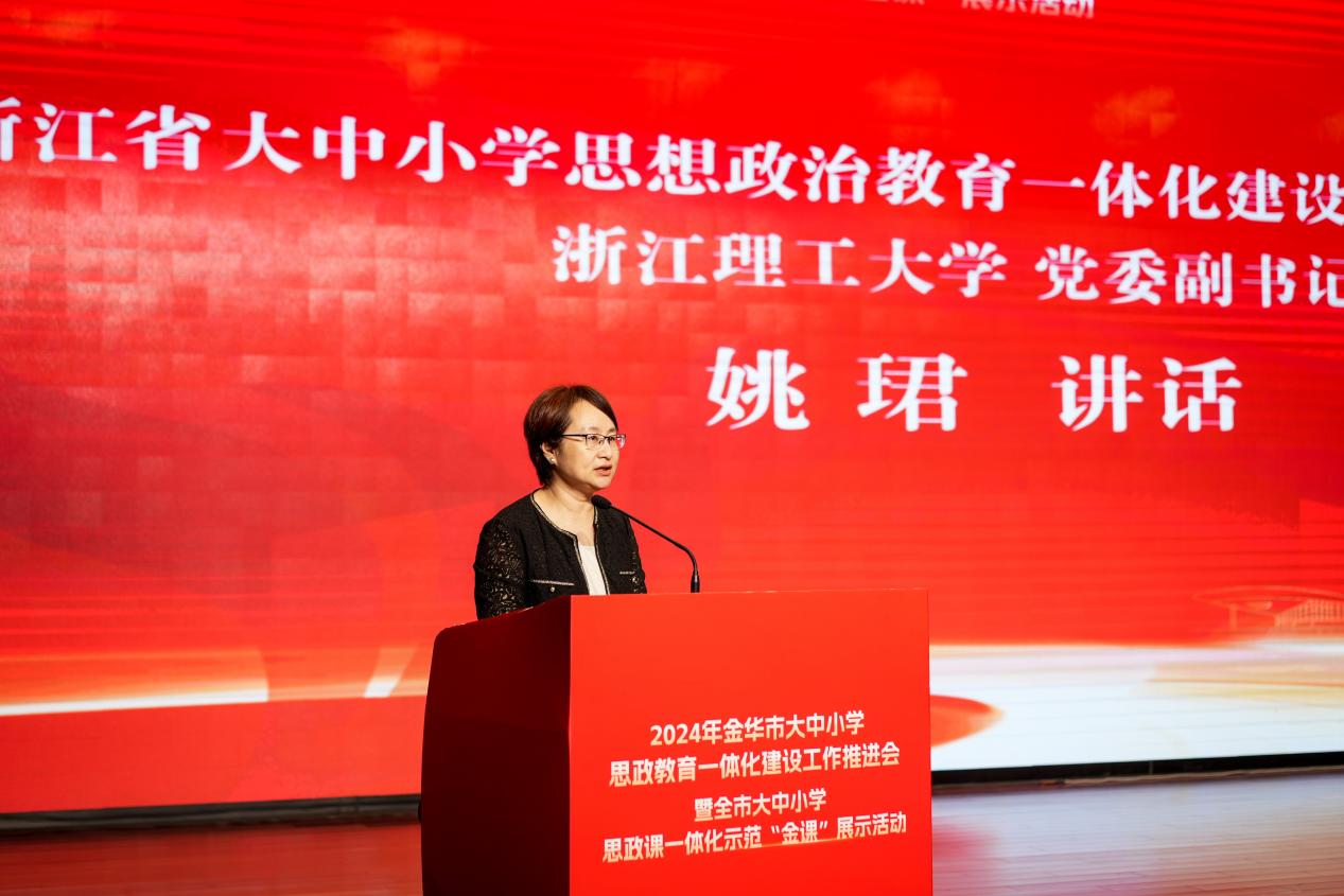 姚珺分享了浙江理工大学创新打造东西南北中“共建共享共育”的大思政课模式所取得的成果成效。他指出,“真理的味道”是省委统筹全局提出的要打响的浙江省大思政育人品牌,金华市充分利用《共产党宣言》中文全译本首译地的独特优势,深入挖掘红色资源,传承红色基因,为打造具有区域特色的大中小学思政课一体化建设联盟注入强大动力,为浙江省思政课一体化建设贡献了金华力量。
