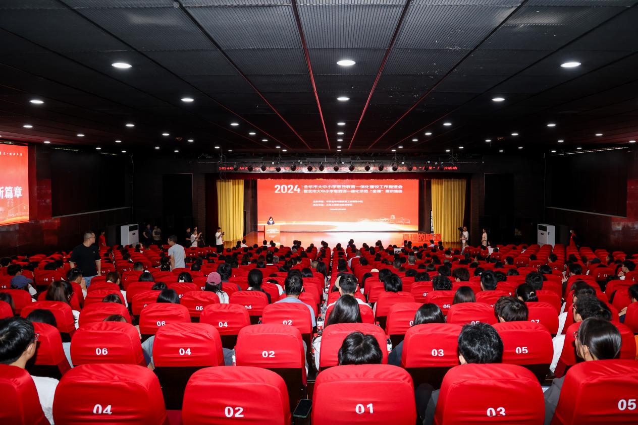 5月28日上午,2024年金华市大中小学思政教育一体化建设工作推进会暨全市大中小学思政课一体化示范“金课”展示活动在义乌工商职业技术学院举行。浙江省教育厅宣教统战处调研员葛红敏,金华市委教育工委副书记,市教育局党组书记、局长楼伟民,金华市委宣传部部务会议成员、市新闻出版局局长戴敦建,义乌市委常委、宣传部部长朱有清,义乌工商职业技术学院党委书记李昌祖等领导出席会议。