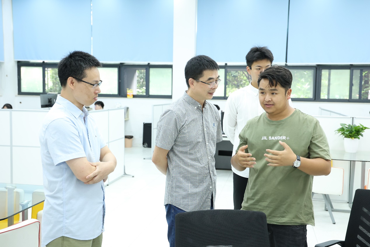 座谈会前,章正春一行参观走访了学校创业园,并与学生进行探讨交流。