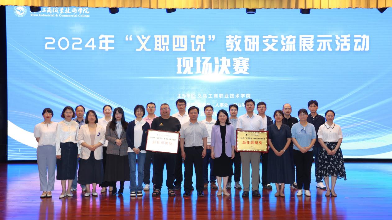6月4日下午,2024年“义职四说”教研交流展示活动现场决赛在丹溪文化厅举行。党委副书记叶斯源、副院长盛湘君出席会议,教务处、人事处、教育督导处、招生就业处及二级学院教学相关负责人、专业主任、骨干教师及近三年新入职教师共200余人现场观摩。
