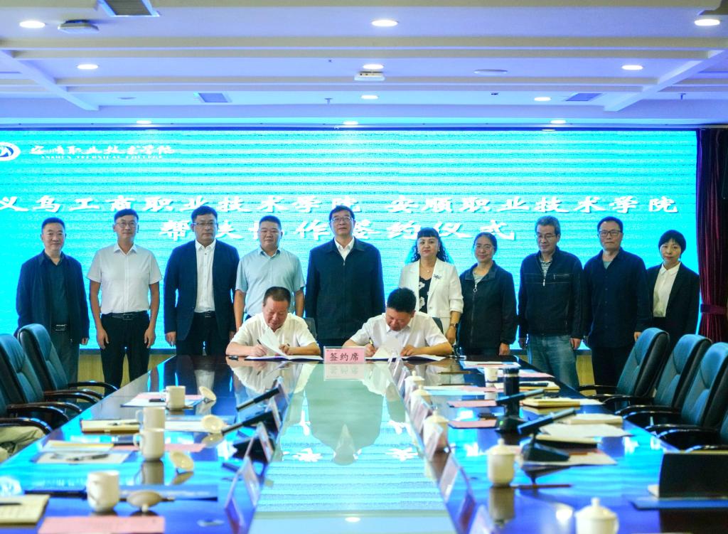 6月6日,学校与贵州安顺职业技术学院(以下简称安顺职院)举行帮扶协作签约仪式。院长马广,党委委员、办公室主任高燕,安顺职院党委书记许志、院长李昕昌等参加了签约仪式。