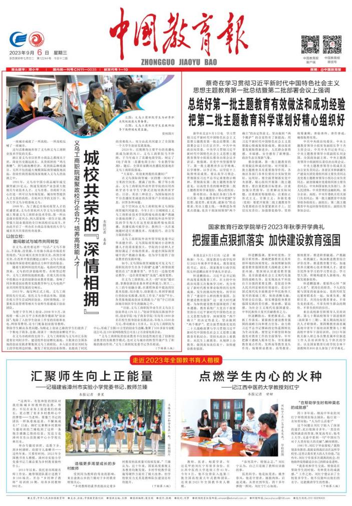 一是深化党建共融,把稳理论宣讲“方向盘”。学校与中共义乌市委深化党建联建机制建设,在义乌市十余个镇街开展“点单式”宣讲。组建由二级学院9支师生宣讲队伍组成的“望道行”宣讲团,与义乌市委宣传部在义乌市李祖村共同举办“义起筑梦”宣讲实践活动。2023年累计开展各类宣讲100余场,覆盖受众300余万人。《“望道行”登上“真理号”》获评教育媒体融合优秀典型案例。