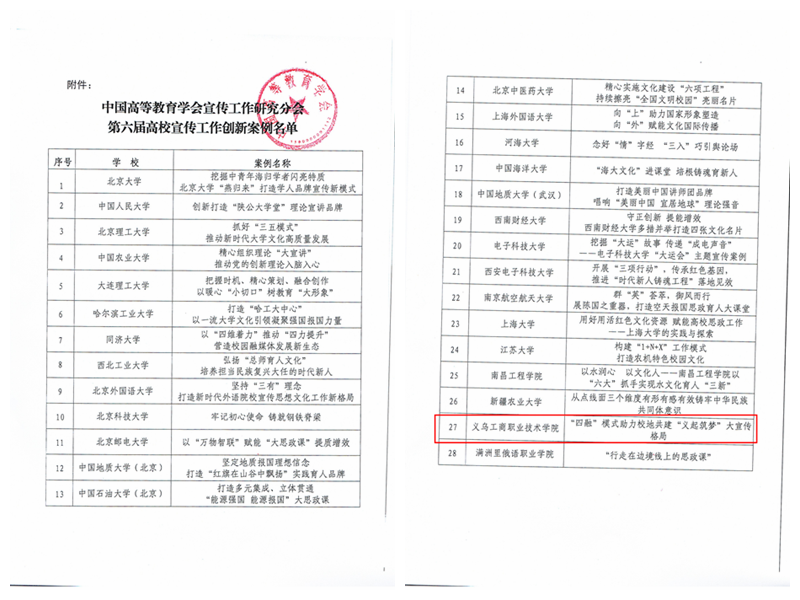 6月14日-16日,中国高等教育学会宣传工作研究分会在大连理工大学召开。来自全国各地的理事、会员、新闻媒体,以及各高校、教育领域的近180名专家学者齐聚一堂,以“担当新时代新的文化使命”为主题深入学习贯彻习近平文化思想,展现新时代高校宣传思想文化工作新气象新作为。会上公布了第六届高校宣传工作创新案例28项,学校报送的《“四融”模式助力校地共建“义起筑梦”大宣传格局》案例入选并被收录《第六届高校宣传工作创新案例》,成为2项来自高职院校的案例之一。