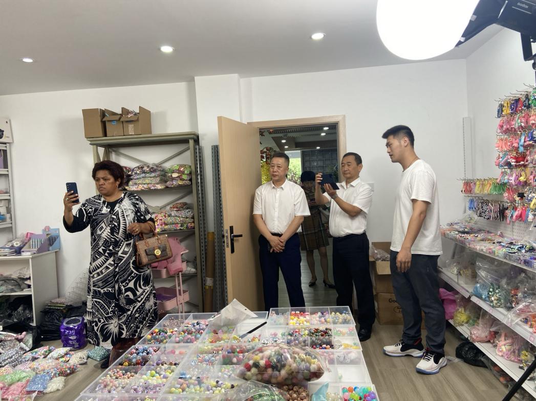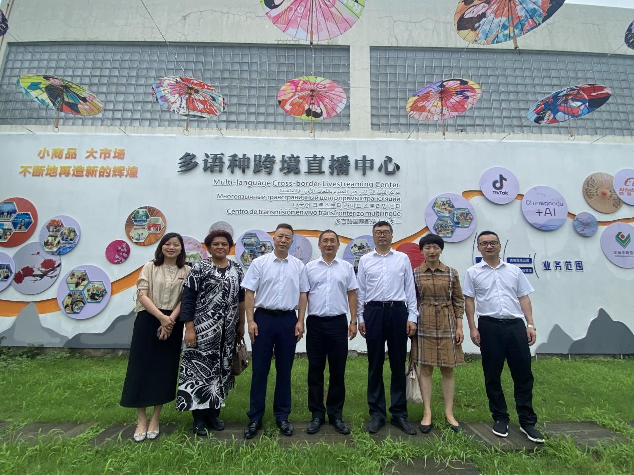 6月26日上午,斐济共和国驻华大使李振凡(Robert Lee)、大使馆二秘阿美利亚·柯勃纳(Amelia Cobona)一行在义乌市外事办党组书记、主任吴丹陪同下来校访问,走访参观了国际创客园及多语种跨境直播中心。党委委员、副院长樊曜,校友总会会长何少庆及国际处、外语外贸学院负责人陪同考察、交流。