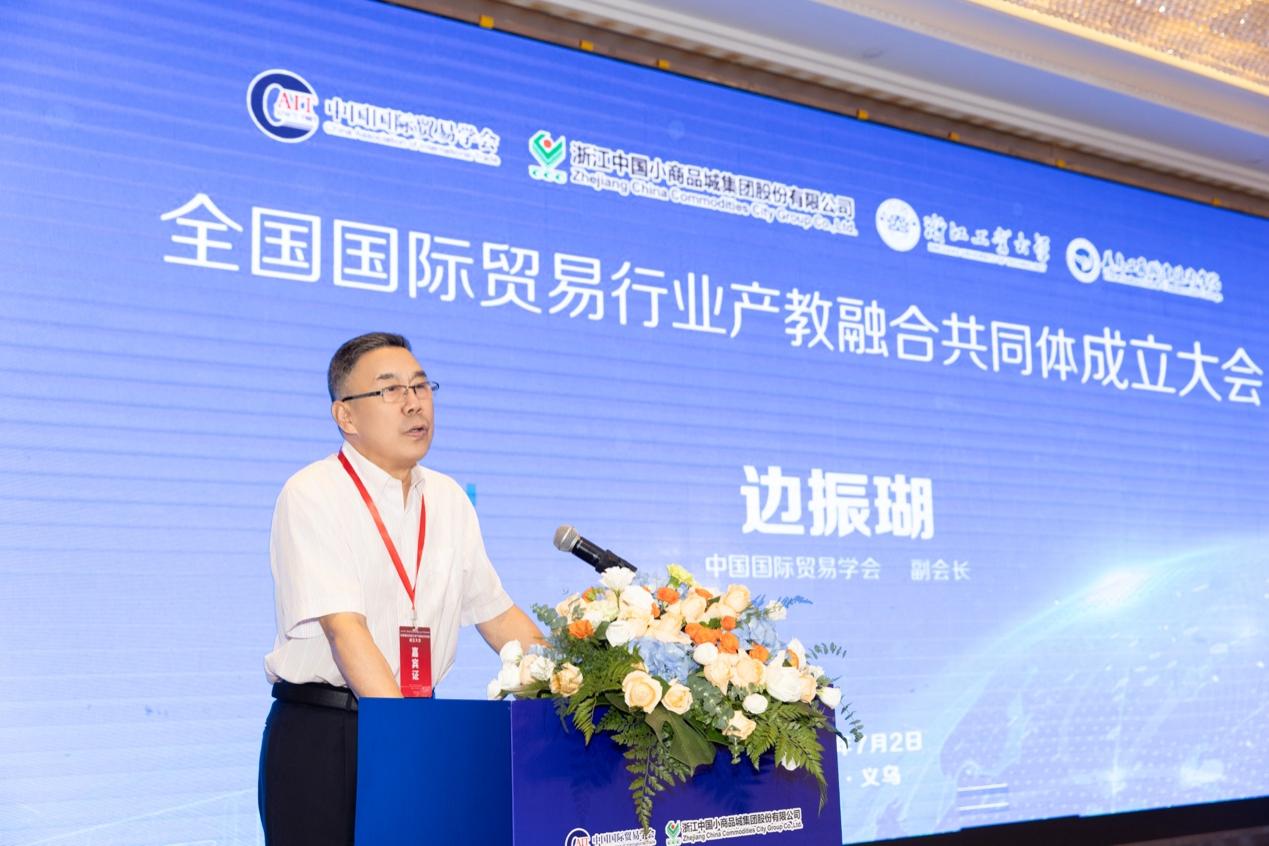 2024年7月2日,全国国际贸易行业产教融合共同体成立大会在浙江义乌举行,来自全国各地的本科院校、职业院校、科研院所、行业组织和企事业单位等154家单位加入了该共同体。