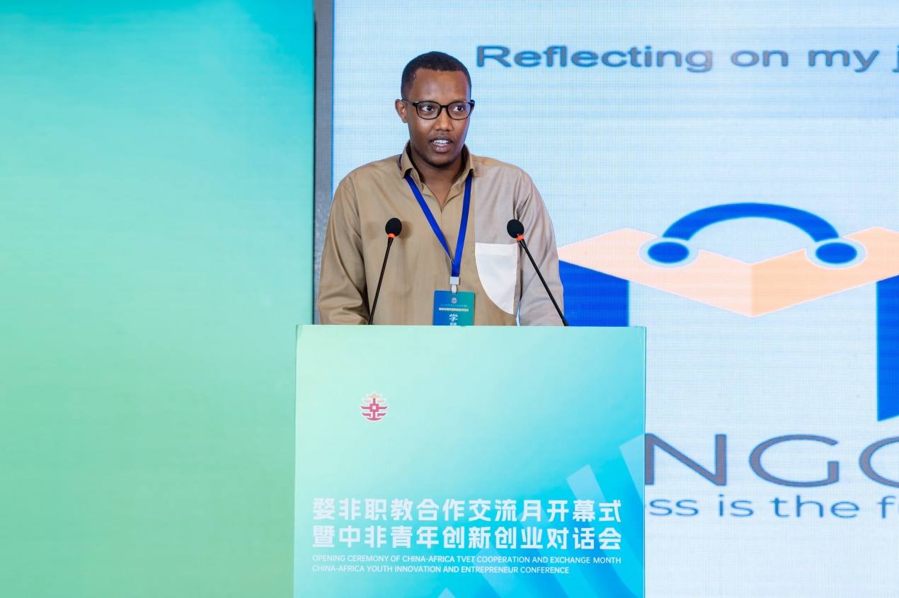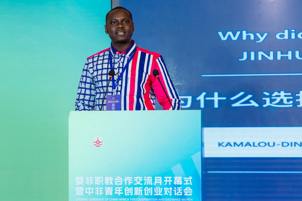 在分享交流环节,金华职业技术大学卢旺达校友MUTANGANA JEAN DE DIEU、浙江广厦建设职业技术大学刚果(布)学生MILANDOU MINOU POULASSI、义乌工商职业技术学院的贝宁学生KAMALOU-DING ADISSA AKINOCHO和摩洛哥校友ASMOUN ZAKARIA做了创新创业经验分享,并与现场其他非洲青年进行了互动交流。