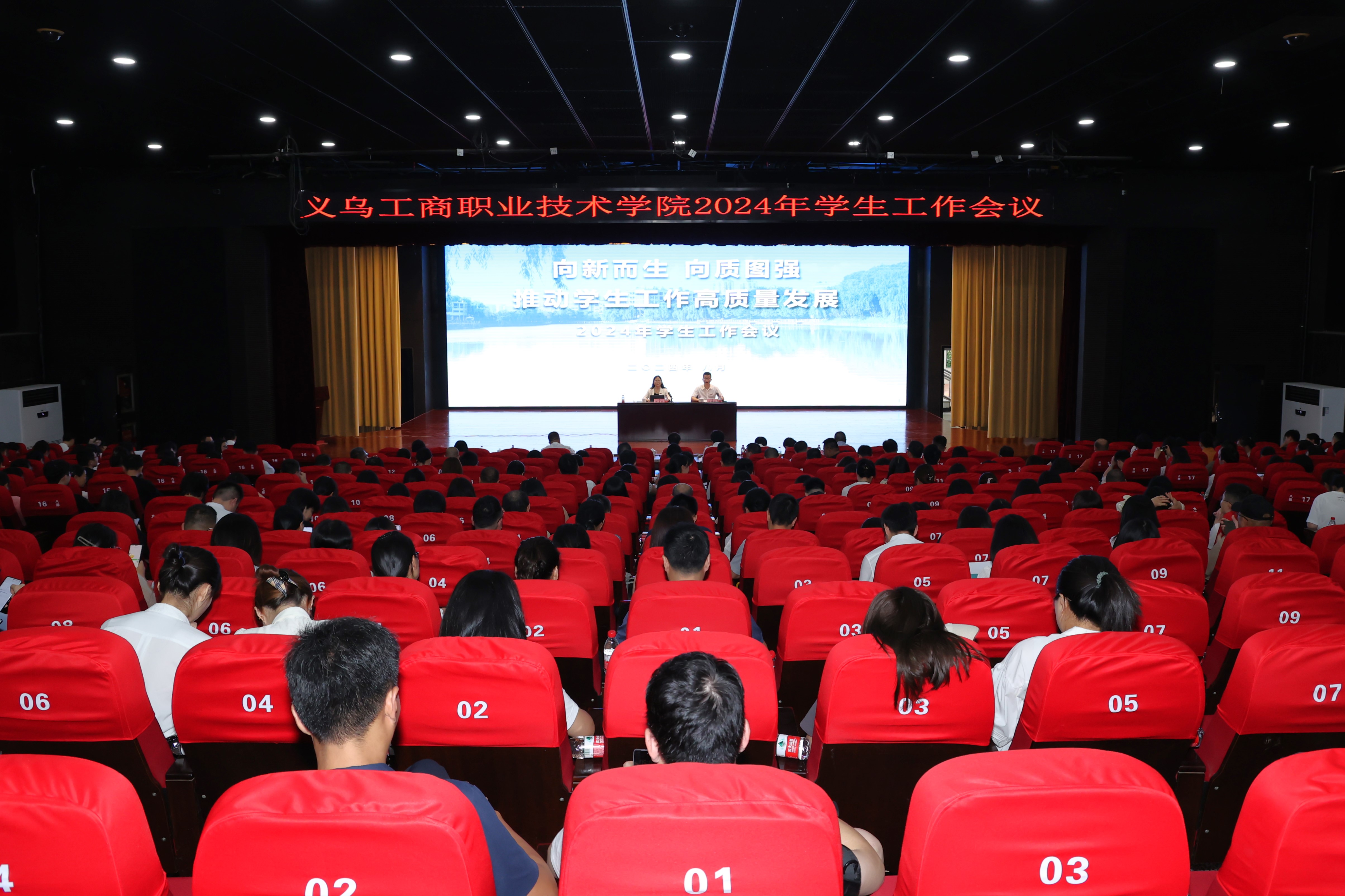 此次会议以“向新而生,向质图强,推动学生工作高质量发展”为主题,包含学生工作报告、表彰先进、二级学院代表交流发言、2024年“十大标兵”汇报展示、专题讲座、校领导讲话等六项议程。