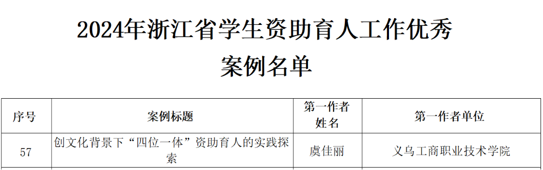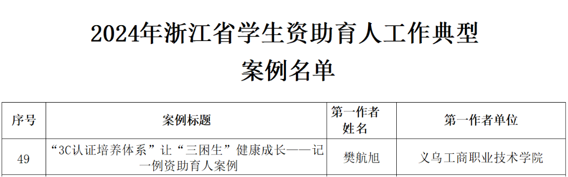 近日,浙江省资助育人工作典型案例、优秀案例名单公布,我校建筑工程学院樊航旭老师、创业学院虞佳丽老师撰写的资助育人工作案例分别入选典型案例、优秀案例。