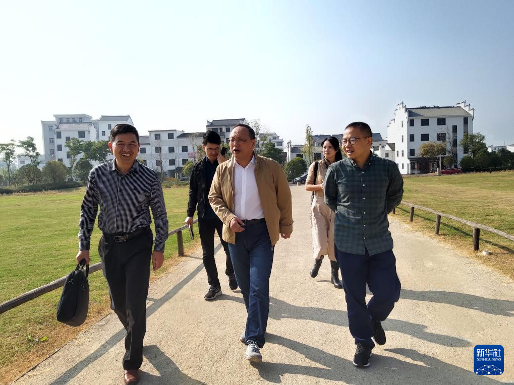 2019年10月22日,徐利民(前中)在浙江省金华市浦江县上山考古遗址公园工作。(新华社)