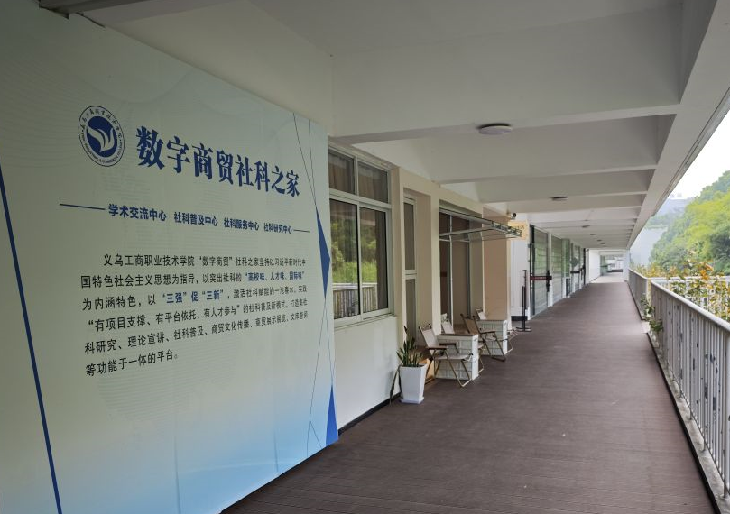 “数字商贸”社科之家位于校数字贸易实训基地,面积约4000平方米,包含商贸研究中心、商贸大讲堂、商贸直播间、商贸图书馆、商贸展示厅、社科信义广场和社科生活馆七大功能场所,构成多维度、深层次的社科研究毓交流平台。该场地不仅是一个集社科研究、理论宣讲、社科普及于一体的综合性基地,更是商贸文化传播、商贸展示展览、文库资料查阅的重要窗口,展示了学校在推动社会科学与商贸实践深度融合方面的积极探索与显著成效。