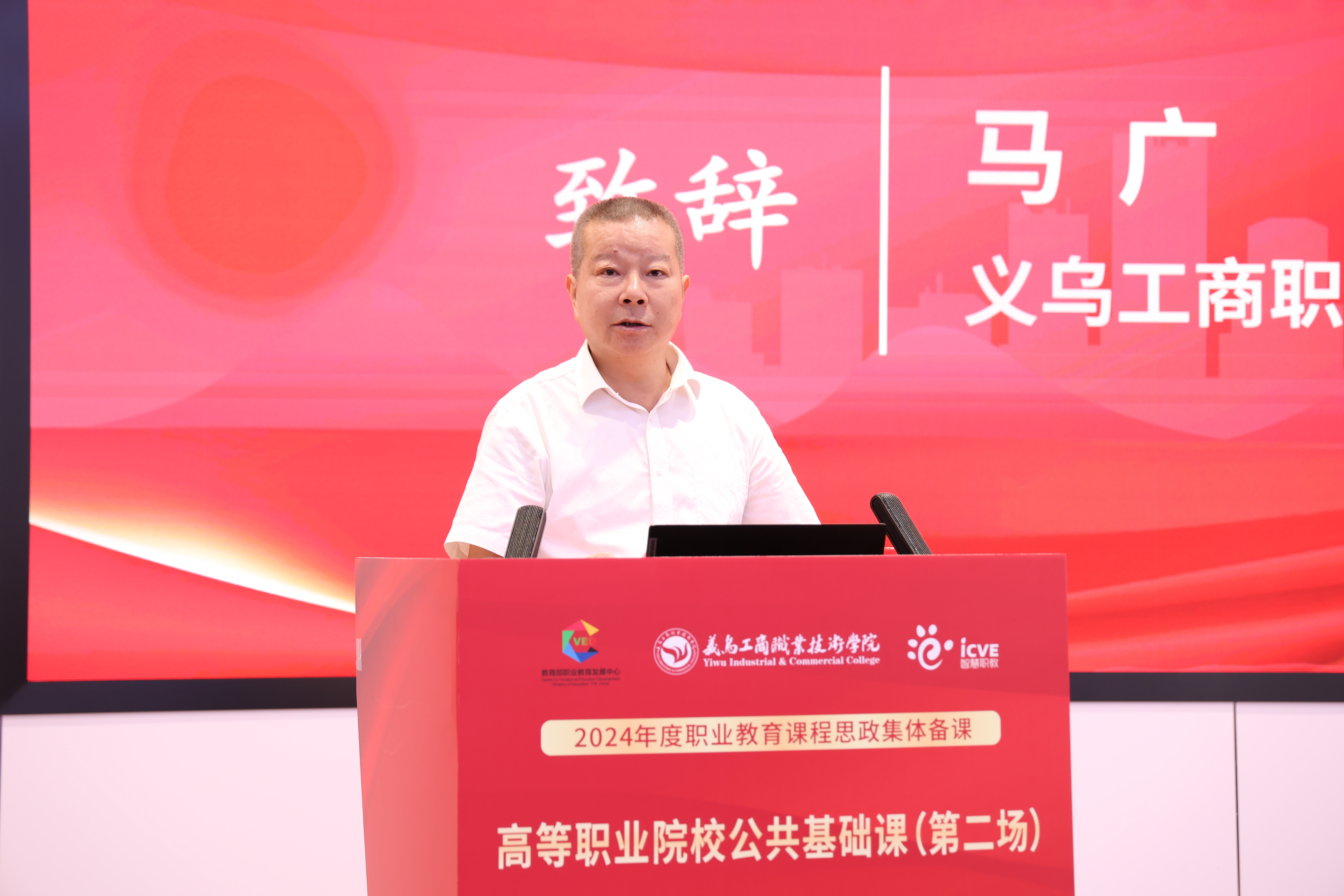备课会开场式环节,教育部职业教育发展中心副主任黄辉发表讲话、义乌工商职业技术学院院长马广致辞。黄辉表示,推进课程思政是落实立德树人根本任务的重要途径,组织开展职业教育课程思政集体备课活动,是加强职业教育课程思政建设的重要举措,是提升思想政治教育质量的关键一环。希望大家将这次课程思政集体备课活动与学习贯彻全国教育大会精神结合起来,不断提高政治站位,不断提高育人能力,共同为推进职业教育高质量发展,建设教育强国贡献智慧和力量。