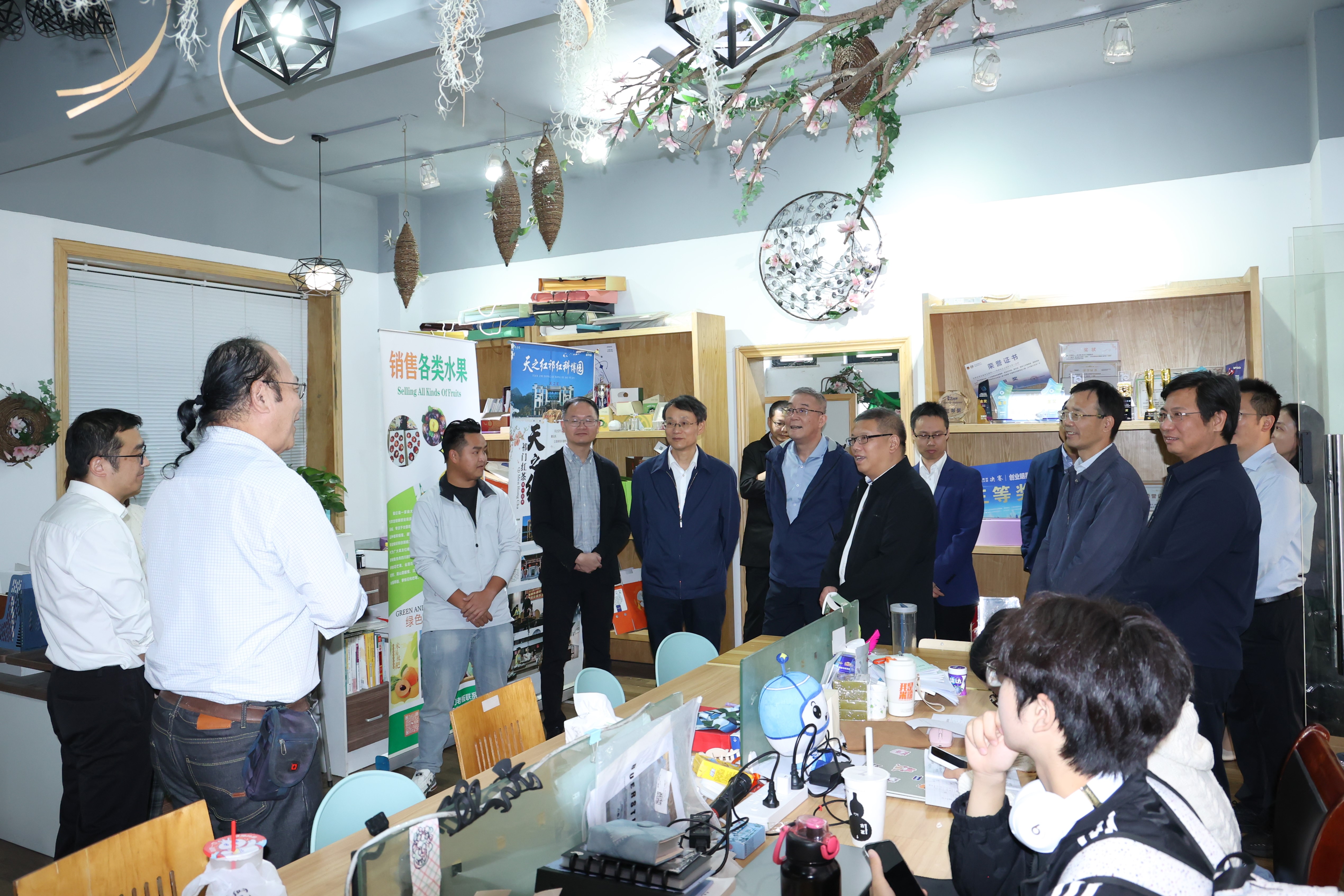 叶华松一行首先走访了我校的创业园。在创业园内,他们详细了解了学校创业教育的实践探索和成果成效,参观了多个我校师生创办的企业和项目。叶华松表示我校在创业孵化、资金支持、创业指导等方面具有先进经验,探索了创业教育实践的新模式,十分值得学习和借鉴。