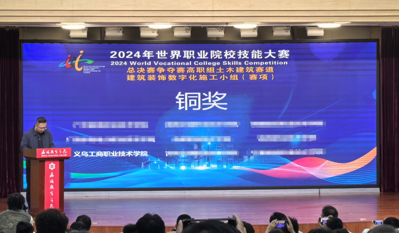 10月26日至30日,2024年世界职业院校技能大赛总决赛争夺赛高职组“建筑装饰数字化施工”赛项在威海职业学院落下帷幕。本次大赛共有来自全国各地的60支队伍参赛,其中,我校建筑工程学院周洁、初筱老师带领的张梦云、钱姝雯、彭国锋、胡栩团队荣获铜奖。