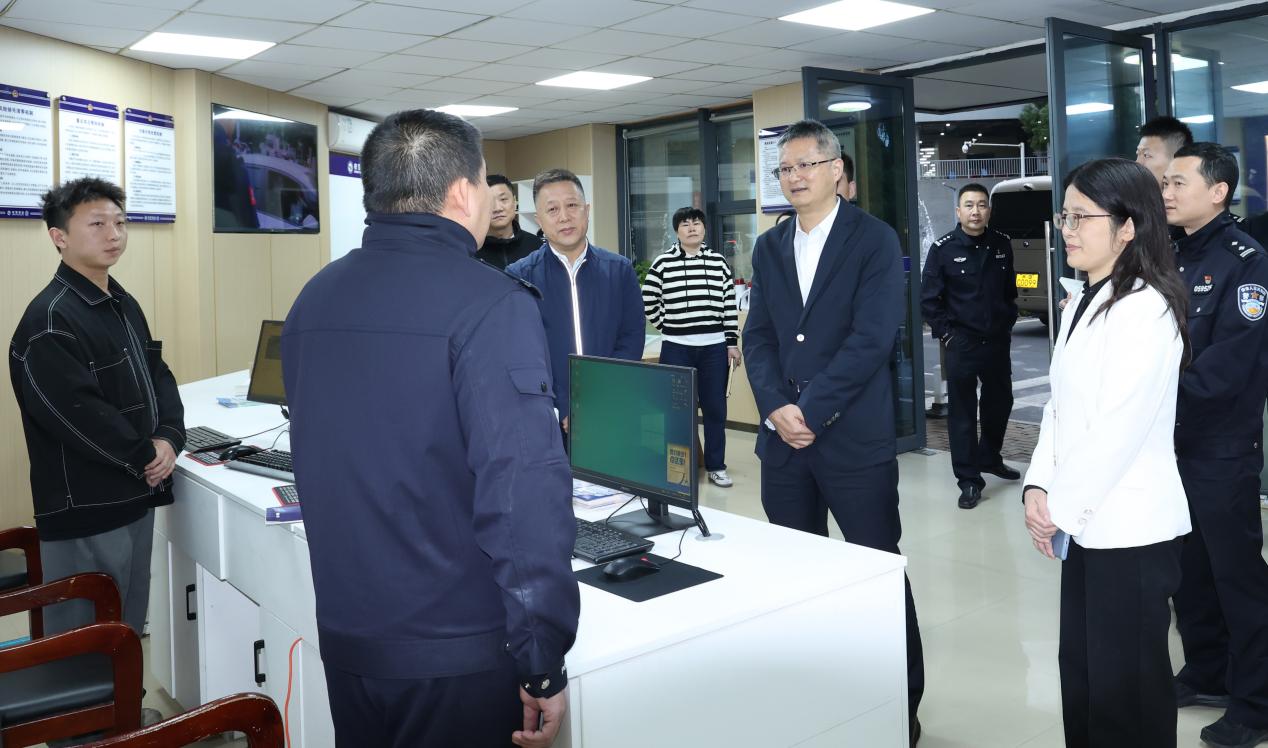 徐建役一行实地走访了学校校警驿站、校园应急指挥中心等场所,对我校校园安全工作给予充分肯定。他强调,要充分认识校园安全稳定工作的重要意义,在校园安全工作中要怀有“归零心态”,注重常抓常新,常抓不懈,抓早抓小;要加强对校园安全工作的研判,认真做好校园安全隐患排查工作,注重群防群治,形成齐抓共管的局面;要不断提高处置突发事件能力,确保在各类突发事件中做到迅速、果断、有效地采取行动,注重有效组织、有效管理、有力应对;要加强校地协同,实现资源共享、优势互补、紧密合作,持续深化“校警驿站”品牌建设,质效并重推动数字化建设,提升数字赋能成效。